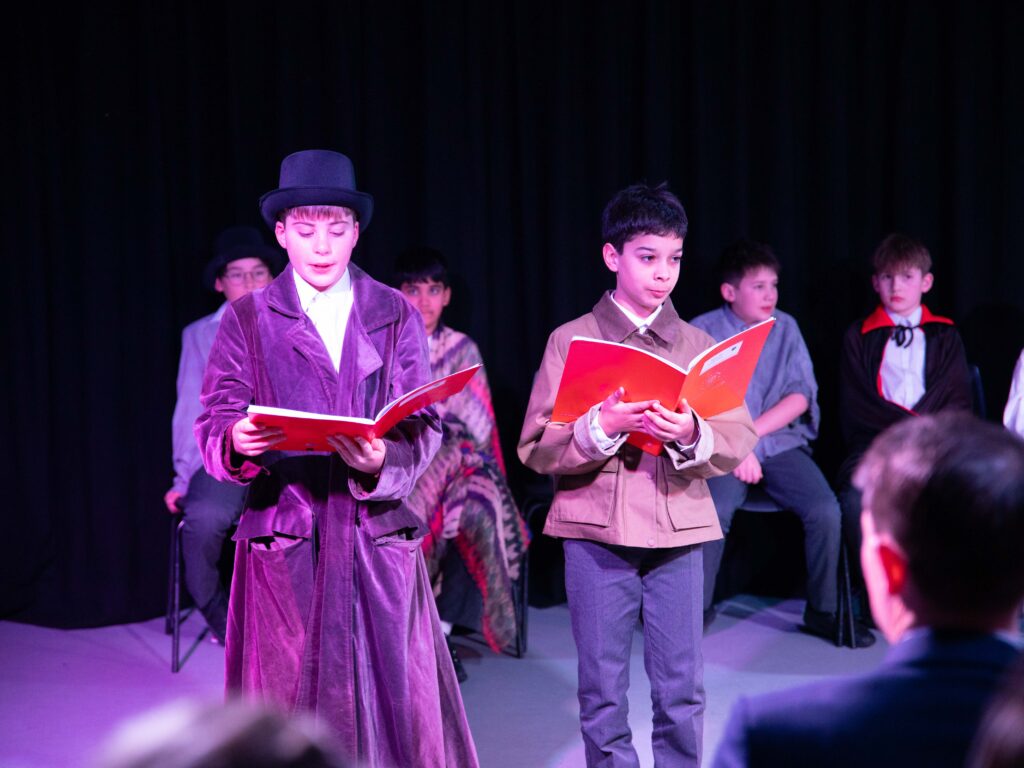 “A Night With Dracula” was a remarkable celebration of Year 6 oracy, inspired by David Calcutt’s high‑level adaptation of Dracula, which challenged the boys’ thinking and creativity. Throughout the evening, they shared powerful, emotionally resonant poems, thoughtful reflective essays, and witty satirical pieces that showed real confidence and humour. Every word was entirely their own. With nothing pre‑written for them and no scripts to memorise, they were free to shape their ideas independently, allowing each performance to reflect their authentic voice.