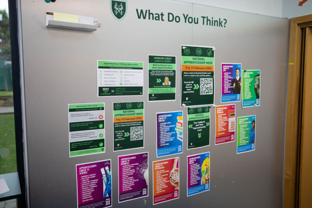 Students received a special bulletin dedicated to apprenticeships, outlining key information and showcasing routes across a wide range of industries. Our careers magnetic board focused on how different apprenticeship pathways link directly to curriculum subjects, helping students to see the clear connections between their studies and future career options.