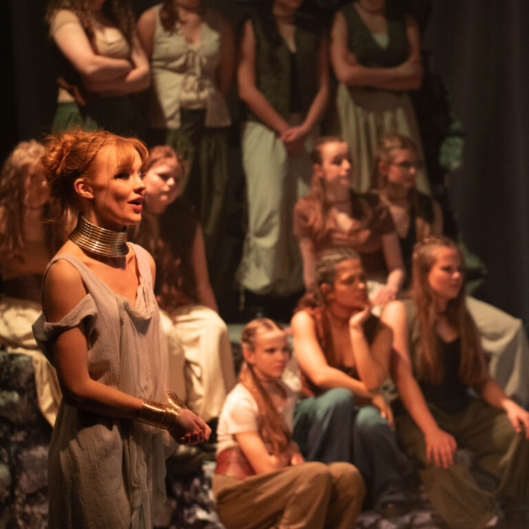 Our Co‑curricular programme is the beating heart of the department. We continually expand and evolve the opportunities on offer, giving pupils the chance to immerse themselves in high‑quality, professionally inspired experiences. Each year, we stage a minimum of 12 productions- ranging from intimate studio pieces to major large‑scale shows. And then there’s our whole‑school musical at the iconic New Wimbledon Theatre, the eighth‑largest auditorium in London. More than 160 pupils take to the stage, performing to audiences of over 3,000. It is truly unforgettable.